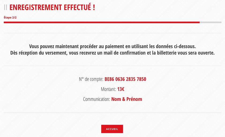 Une fois inscrit, vous serez redirigé sur une dernière page avec toutes les informations nécessaires pour le paiement de votre cotisation. Un mail de confirmation vous sera automatiquement envoyé après l’inscription et un deuxième mail suivra quelques jours plus tard lorsque nous aurons confirmé votre adhésion.