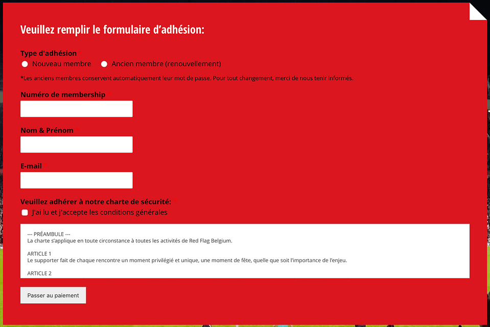 Une fois votre profil créé et votre membership acheté ou renouvelé, vous pouvez revenir sur notre page “Devenir Membre” et cliquer sur REJOINDRE RED FLAG BELGIUM.